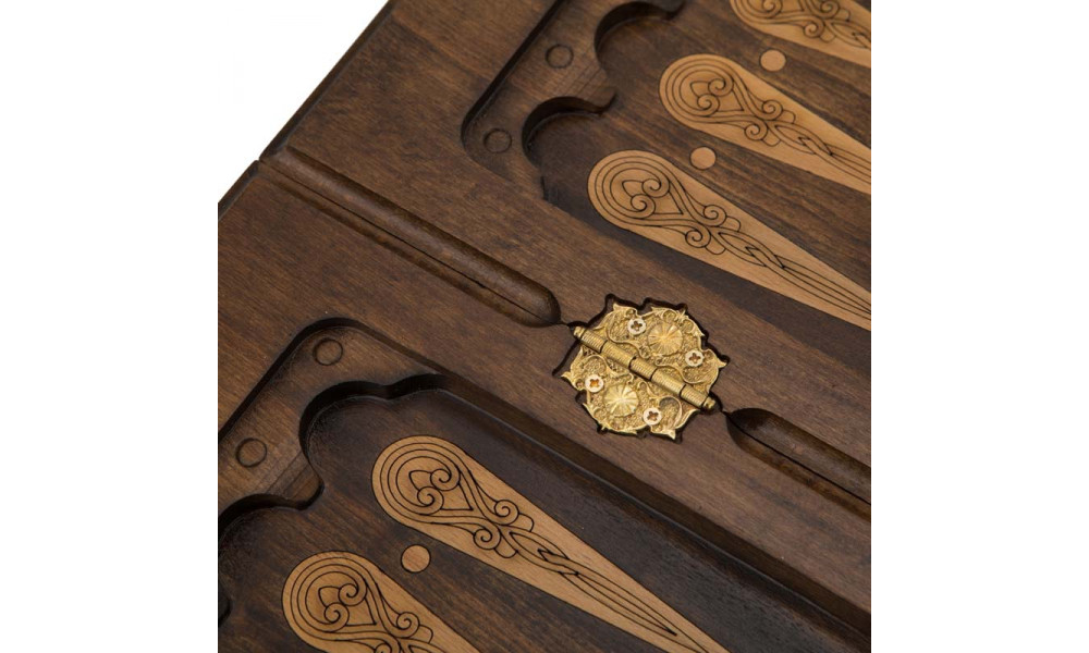 Сама доска, а также идущие к ней в комплекте аксессуары, необходимые для игры в шашки и нарды, тщательно покрыты защитным лаком, благодаря которому изделие отличается долговечностью и абсолютной устойчивостью к различного рода влияниям внешних факторов. Долговечным и износостойким изделие делают также петли и замок из бронзы – прочного и нержавеющего материала. Отличный подарок, который может стать настоящей семейной ценностью, передающейся из поколения в поколение.